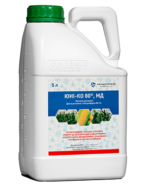 ЮНІ‑КО знищує чутливі бур’яни, які зійшли до моменту обробки та має ґрунтову дію на злакові бур’яни: